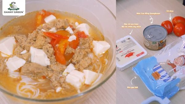 Để mẹ có thể linh hoạt lựa chọn, dưới đây là 2 món ăn sáng xuất sắc từ các sản phẩm đóng hộp của DannyGreen. Các món đều đảm bảo tính tiện lợi, an toàn và hương vị thơm ngon cho con:Bún riêu cua đồng