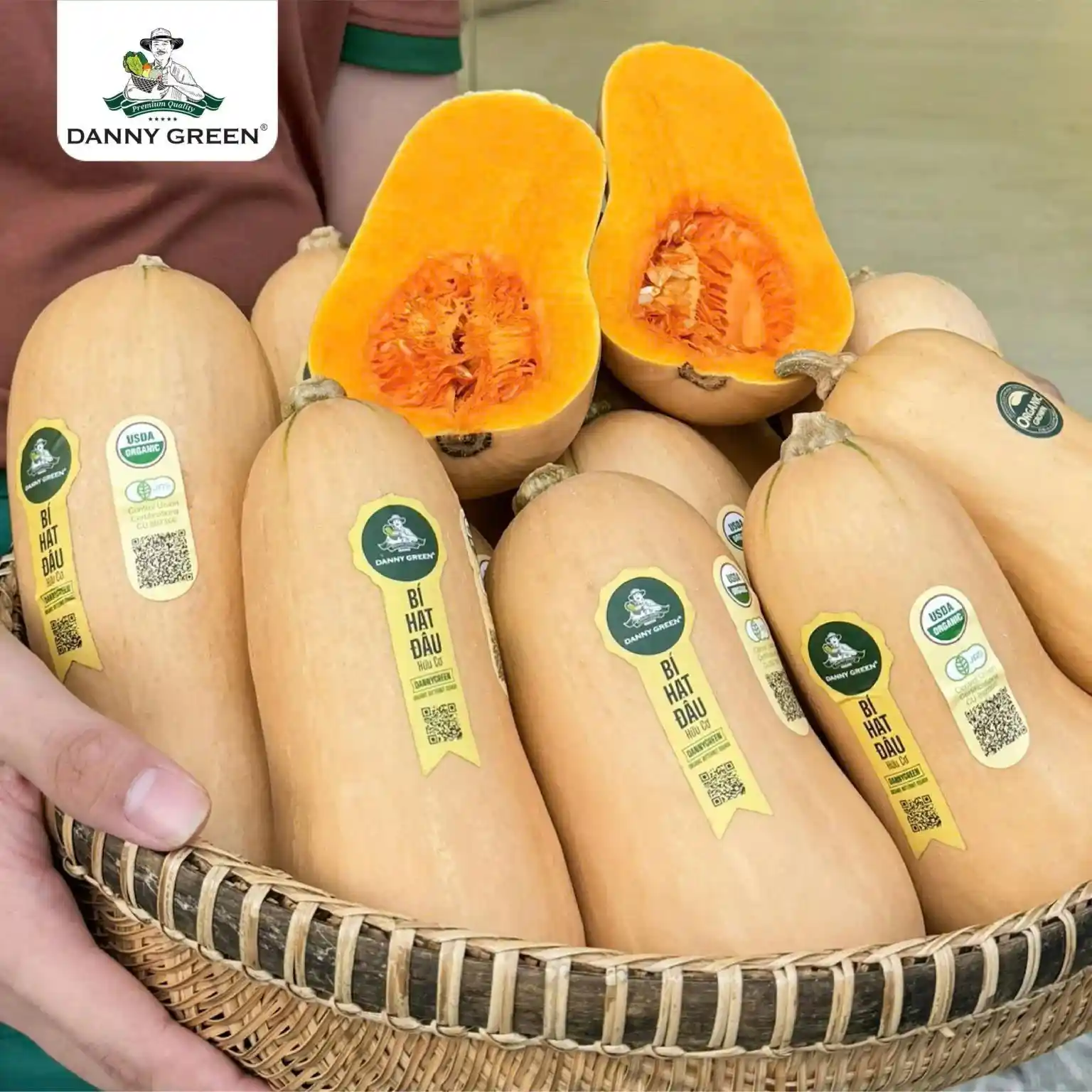 Điểm nhấn quan trọng giúp món súp bí hạt đậu chính là sử dụng Bí Hạt Đậu Hữu Cơ DannyGreen – nguyên liệu sạch, đạt chuẩn hữu cơ quốc tế USDA-NOP (Hoa Kỳ) và JAS (Nhật Bản). Bí Hạt Đậu Hữu Cơ DannyGreen được kiểm soát chất lượng nghiêm ngặt từ quá trình gieo trồng đến bảo quản, vận chuyển. Nhờ vậy, bí hạt đậu giữ trọn vị ngọt thanh, mềm mịn tự nhiên cùng hàm lượng vitamin và khoáng chất dồi dào.