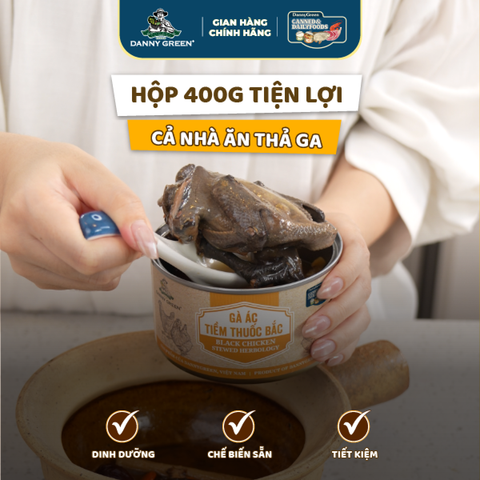 Gà Ác Tiềm Thuốc Bắc DannyGreen là món ăn bổ dưỡng từ gà ác, được hầm cùng các vị thuốc bắc tạo ra hương vị cân bằng nhưng không kém phần lôi cuốn. Gà ác nguyên con được tiềm trong nhiều giờ, thịt gà ác mềm mại, đậm hương đặc trưng từ các vị thuốc bắc. Ngoài ra, Gà Ác Tiềm Thuốc Bắc DannyGreen có tác dụng bồi bổ cơ thể, tăng cường sức đề kháng.