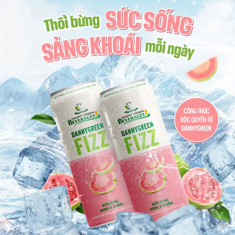 Nước Có Gaz Hương Vị Ổi Hồng DannyGreen Fizz với 10% là nước ép ổi hồng, với công thức có gaz độc quyền.