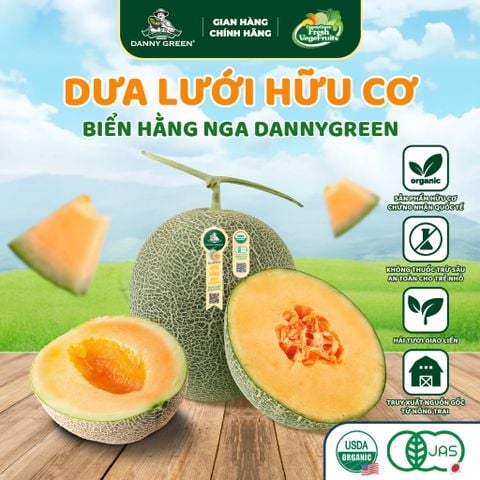 Dưa Lưới Hữu Cơ Biển Hằng Nga DannyGreen là giống dưa lưới Đế Đặc Mật có xuất xứ từ Thái Lan. Dưa được canh tác hữu cơ tại Nông Trại Hữu Cơ DannyGreen, Việt Nam. Trái dưa dáng bầu dục, vỏ xanh, vân lưới nhuyễn đều. Ruột dưa màu cam, thơm đậm vị mật. Thịt dưa giòn tan và có vị ngọt thanh mát. Là sản phẩm đạt chứng nhận hữu cơ quốc tế USDA – NOP (Hoa Kỳ) và JAS (Nhật Bản), Dưa Lưới Hữu Cơ Biển Hằng Nga DannyGreen có chất lượng cao, an toàn với sức khoẻ người tiêu dùng.
