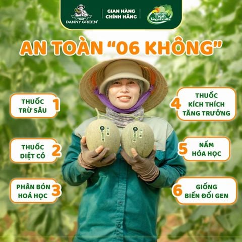 Dưa được chăm sóc cẩn thận từ khâu gieo hạt để đảm bảo chất lượng tới người tiêu dùng. Với mỗi cây dưa, DannyGreen chỉ để lại một trái duy nhất để đảm bảo chất dinh dưỡng được tập trung nuôi quả. Dưa có thể sử dụng để ăn trực tiếp hoặc chế biến các món tráng miệng.