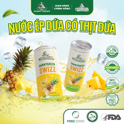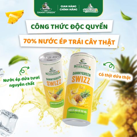 Nước Ép Dứa Có Thịt Dứa DannyGreen Swizz là dòng sản phẩm nước giải khát với 70% là nước ép dứa tươi nguyên chất cùng thịt dứa, theo công thức độc quyền từ DannyGreen